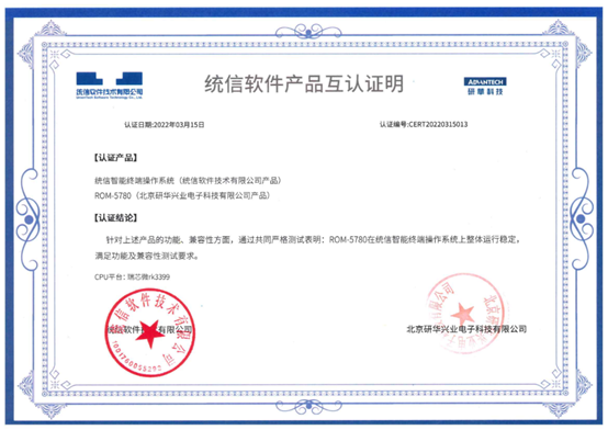 统信智能终端操作系统具有灵活定制、高效低耗的特点,在产品设计、操作体验上更加注重国人的手势触摸使用习惯,支持全系列CPU架构,具有良好兼容性、丰富软硬件生态、安全可信等特性,专为平板、移动终端、智慧屏、穿戴设备、自助设备等智能终端量身打造,可服务于金融、医疗、政府、教育、能源等行业,支撑各行业对操作系统的场景化需求。本次研华与统信软件进行互认证的产品,均采用瑞芯微方案,分别为两款核心模块(Computer-on-Module)-ROM-5780B1和ROM-5780,以及三款单板电脑(Single Board Computer)-RSB-4810、RSB-4710、RSB-3710。