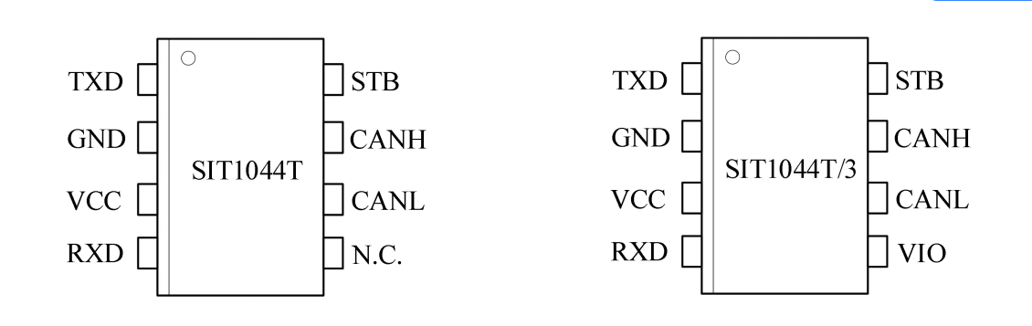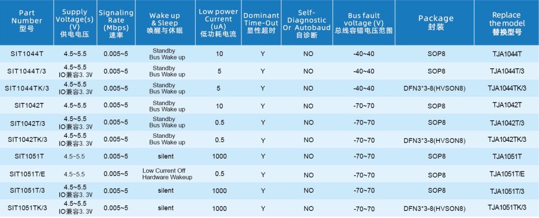• SIT1044T/3型号I/O电压范围支持3.3V和5V MCU;